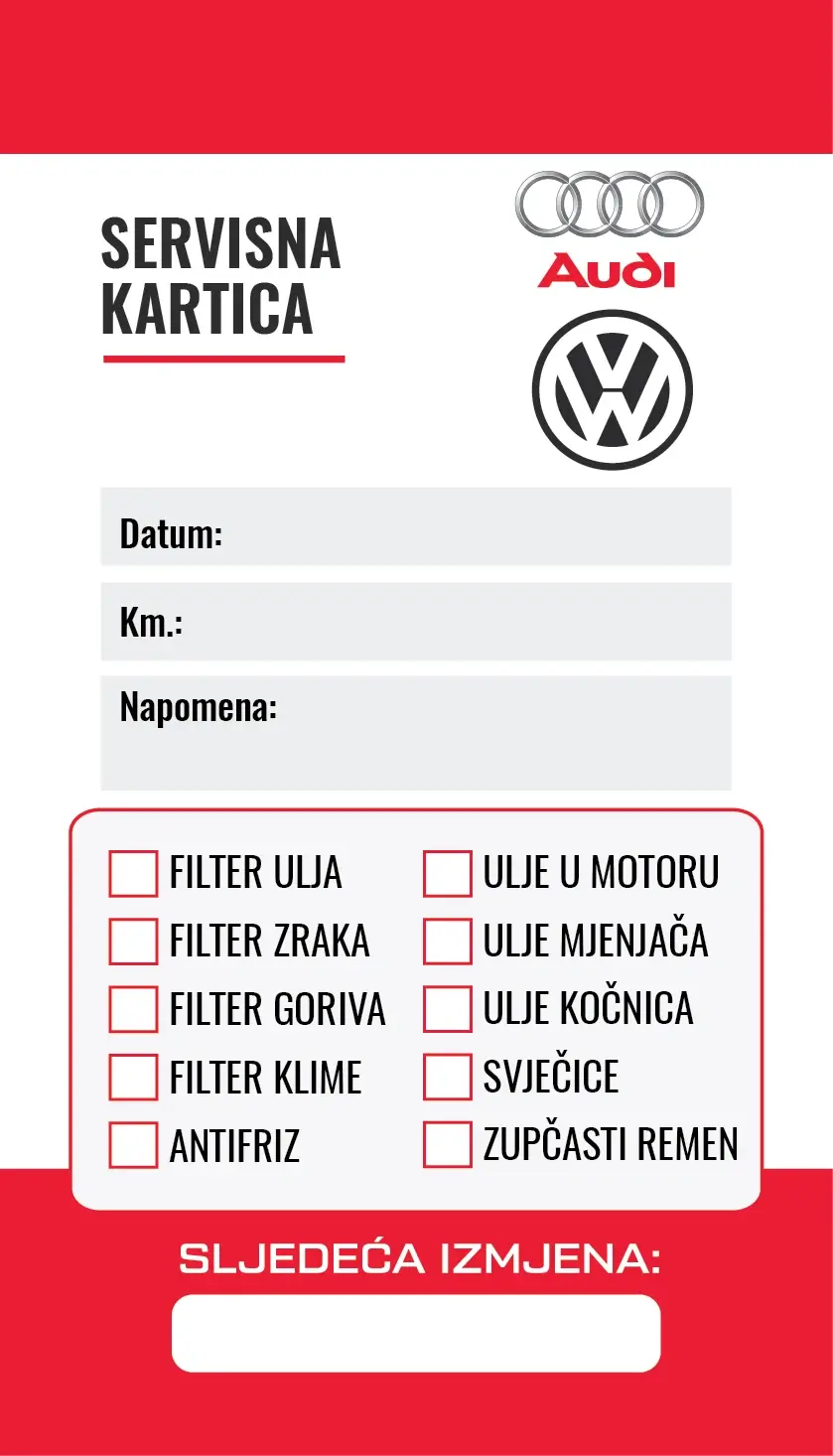 Servisne kartice • Kartice za izmjenu ulja • Kartice za mehaničare