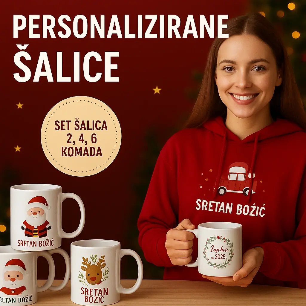 - Šalica s imenom i godinom “Sretan Božić 2025”