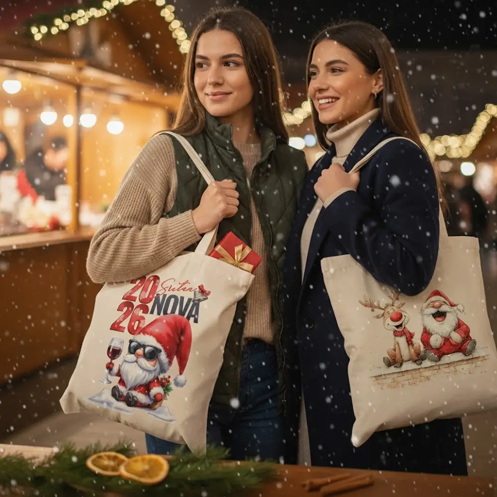 Kao što svake godine raste interes za održive poklone, tako i platnene torbe s tiskom postaju sve popularnije. Osim što smanjuju upotrebu plastike, ove eko božićne torbe traju godinama i mogu se koristiti tijekom cijele godine.